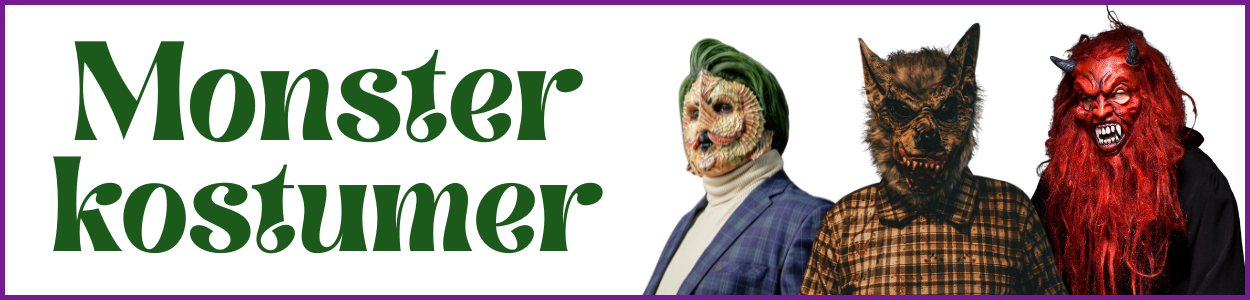 Findes der mon monstre i mørket under sengen? Ja da bare ikke når det er Halloween, for så er de ude med vennerne og lave ballade. Kender du en dreng, pige eller måske voksen, der ville elske at klæde sig ud som et farligt monster? Skal du bruge et rigtigt monster kostume til din egen eller en andens monstertemafest eller vil du blot klædes ud som Frankenstein eller et andet monster til halloween? så er du kommet til det rigtige sted Vores monster kostumer kan fås i både voksen- og børnestørrelse, så der er rig mulighed for at vinde prisen som årets mest uhyggelige, skræmmende eller måske mest gennemførte monster. Vil du spare penge, sælger vi også separate monstermasker, som du kan bruge sammen med dit eget tøj og tilmed få fornøjelsen af et overraskelsesangreb, hvis underholdningen understøtter festens tema. Glem desuden ikke, at du hos Festbutikken også kan købe andre monster kostumer og dermed skille dig lidt ud fra de mange monstre uden decideret at bryde med festens tema. Vi sælger desuden grøn teatersminke og lignende, så du kan ligne et monster i hovedet eller lave dit helt eget monsterbid og rifter.